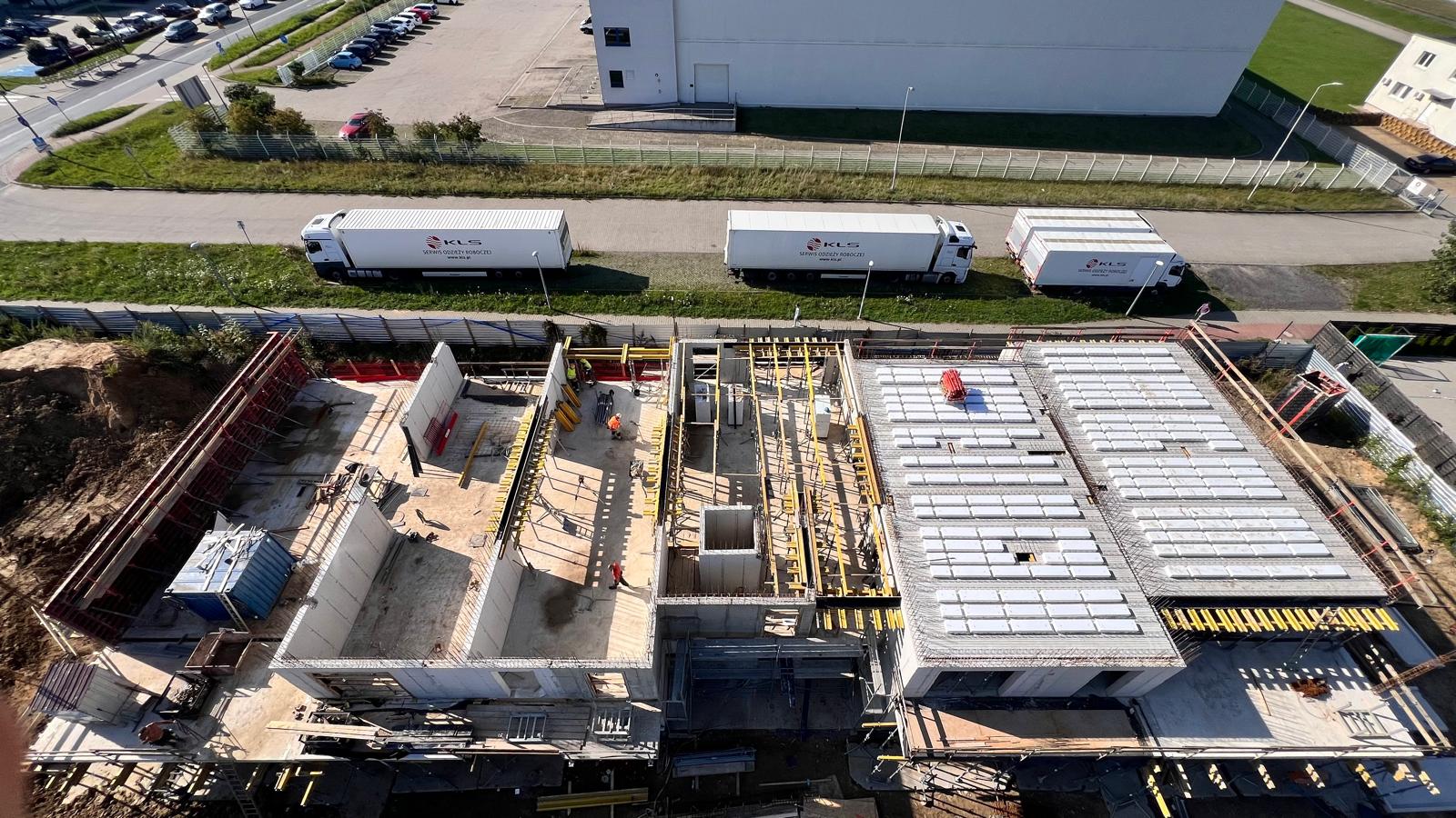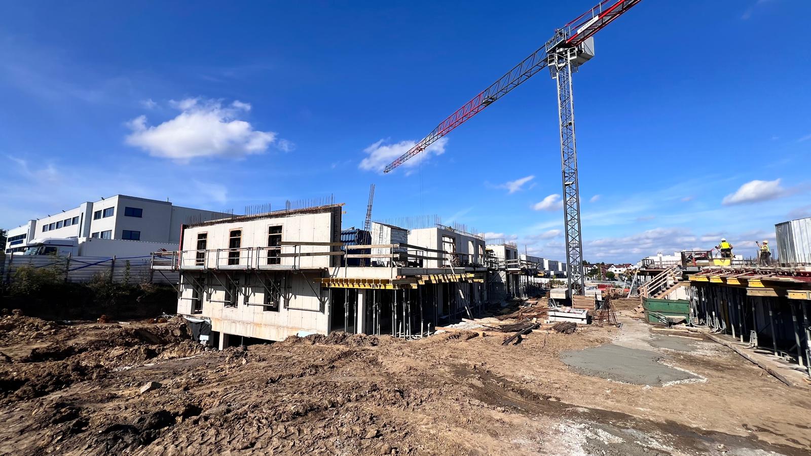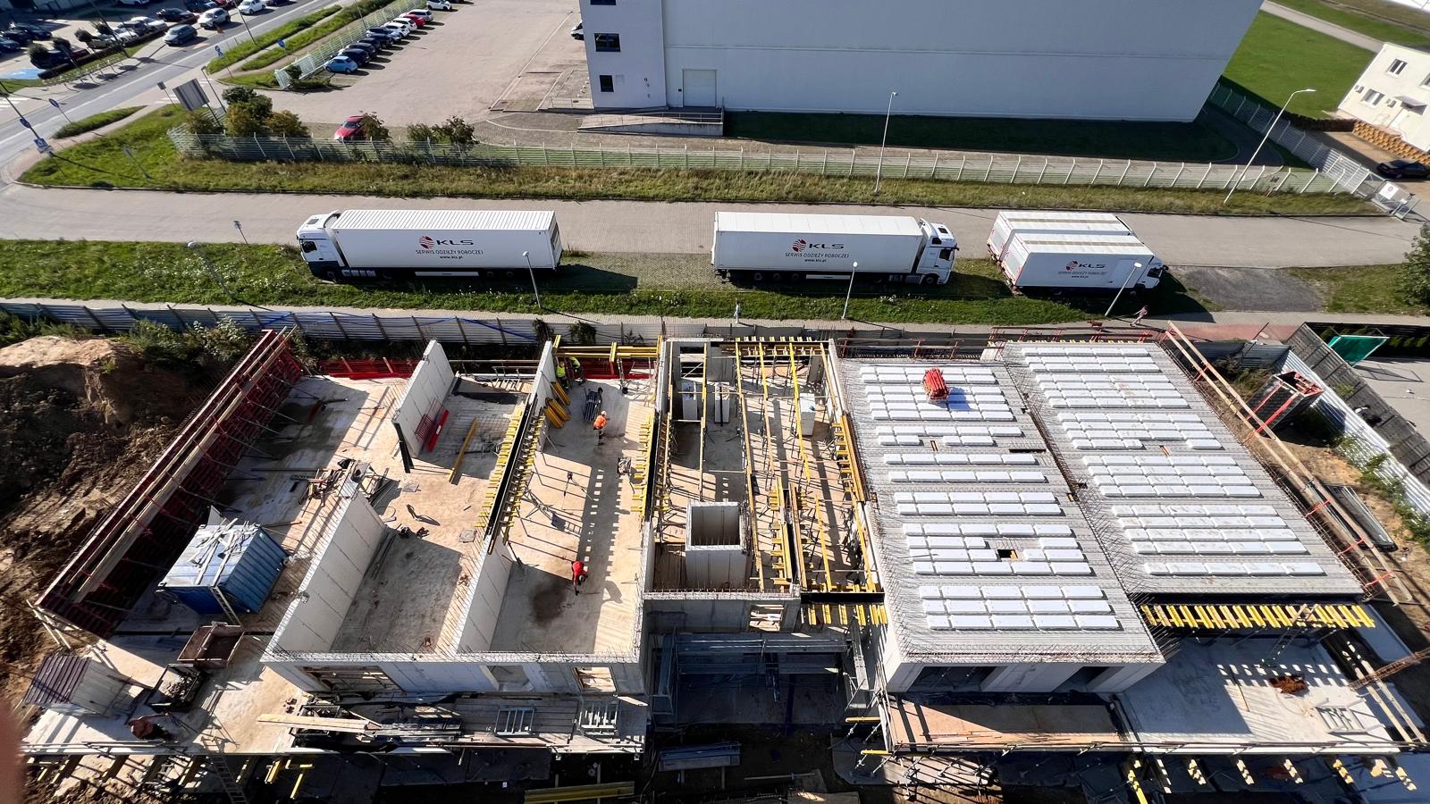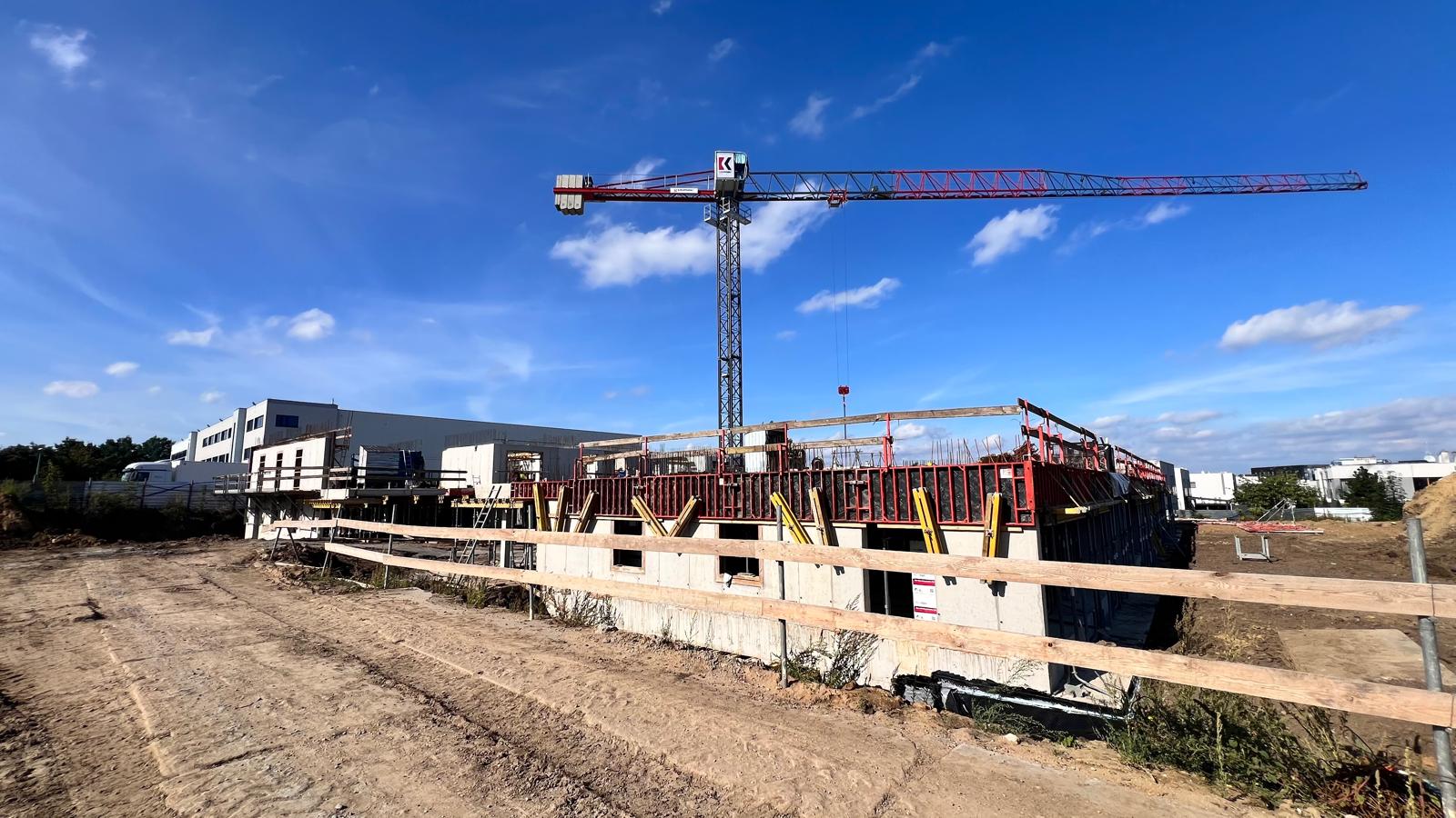 Wykonaliśmy konstrukcję kondygnacji podziemnych budynków 1 i 2 wraz z izolacją oraz ściany parteru. Trwają prace konstrukcyjne na 1 piętrze.
