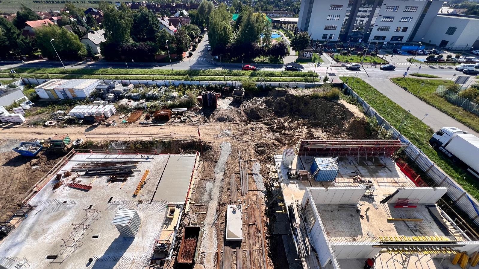 W lutym 2025r rozpoczęliśmy proces budowlany związany z realizacją zadania I przedsięwzięcia deweloperskiego. Początkowe prace budowlane obejmowały odpowiednie zabezpieczenie i przygotowanie terenu budowy. W kolejnych krokach rozpoczęły się prace ziemne związane z przygotowaniem wykopów pod budowę kondygnacji podziemnych budynków nr 1 i nr 2.