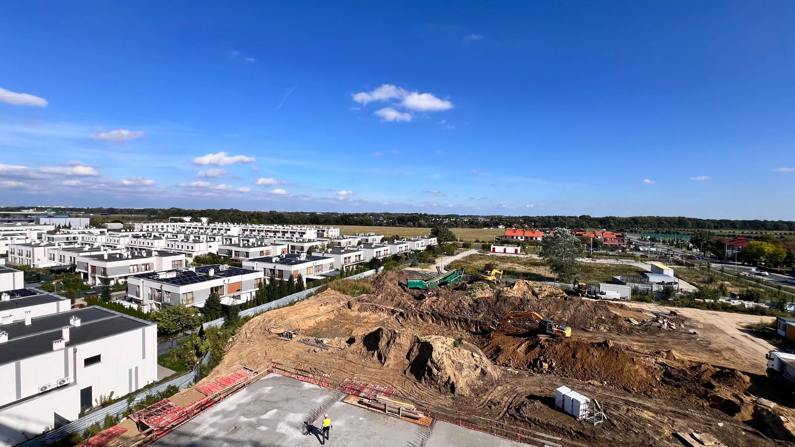W lutym 2025r rozpoczęliśmy proces budowlany związany z realizacją zadania I przedsięwzięcia deweloperskiego. Początkowe prace budowlane obejmowały odpowiednie zabezpieczenie i przygotowanie terenu budowy. W kolejnych krokach rozpoczęły się prace ziemne związane z przygotowaniem wykopów pod budowę kondygnacji podziemnych budynków nr 1 i nr 2.